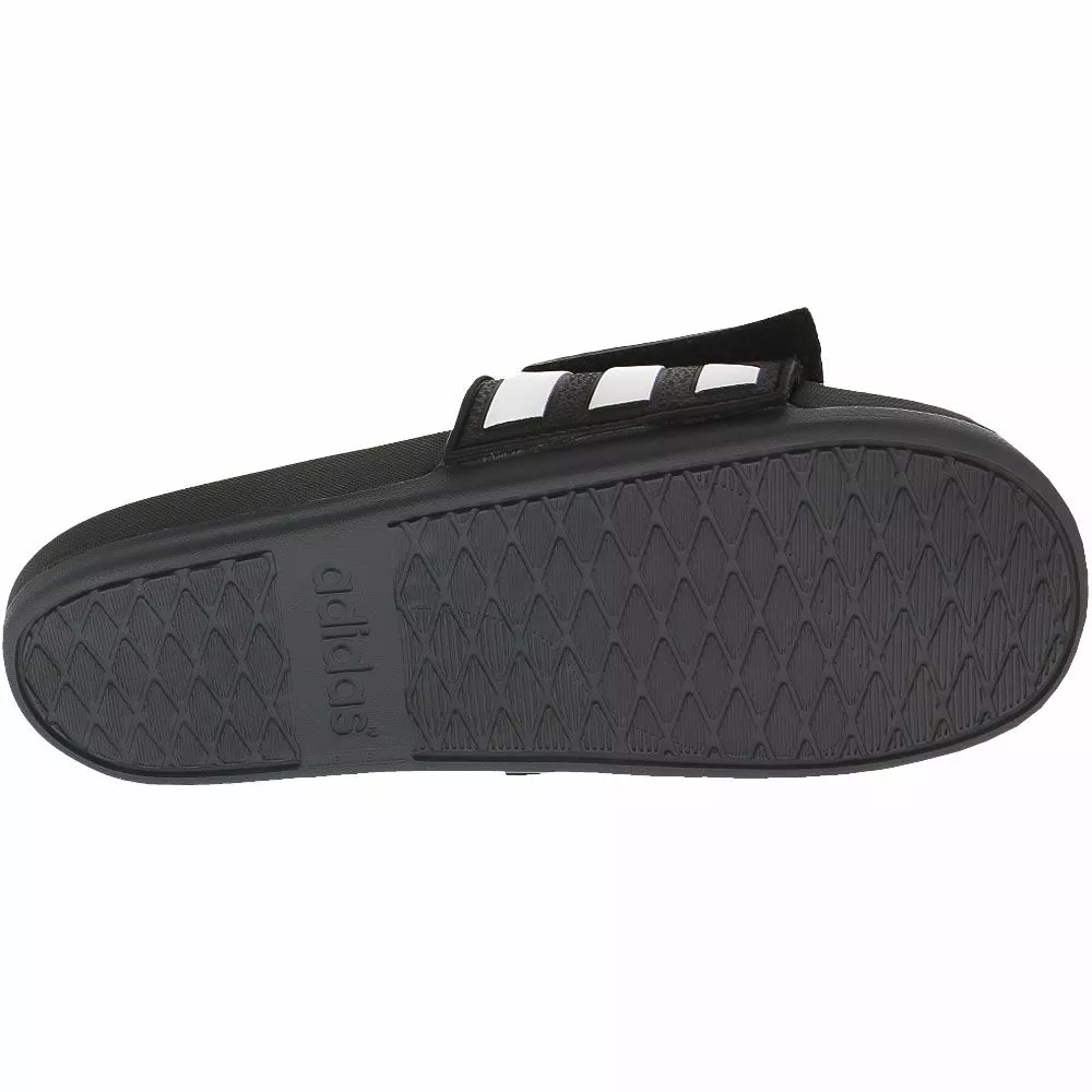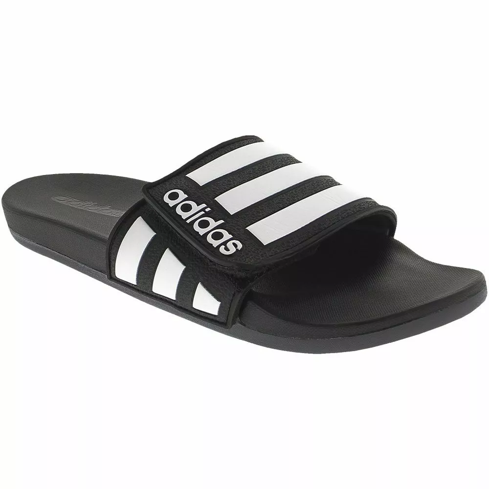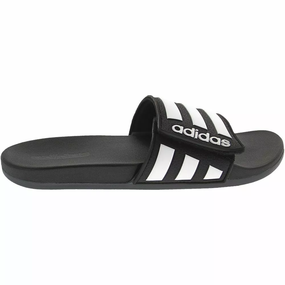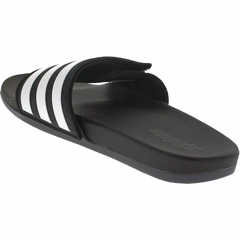 Adidas Adilette Comfort Adj Slide Sandals – Mens. After a long workout or swim, what are you putting on your feet? Don’t reach for any old shoe, treat your feet right with mens slide sandals from Adidas. Adilette Comfort Adjustable Slides are the perfect post-workout footwear. Get a comfortable fit with the hook-and-loop strap and enjoy the smooth, soft contoured footbed. Wear these slides in the shower and the locker room to protect your feet from the dirty floors.