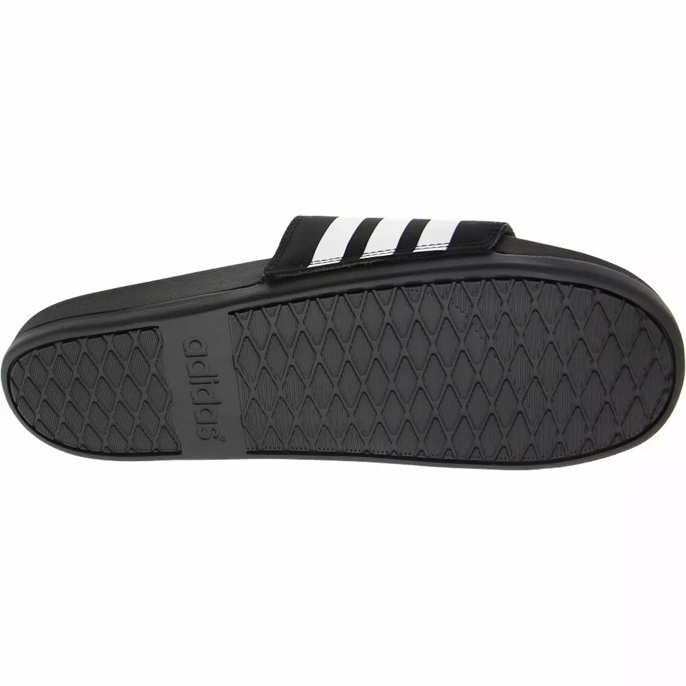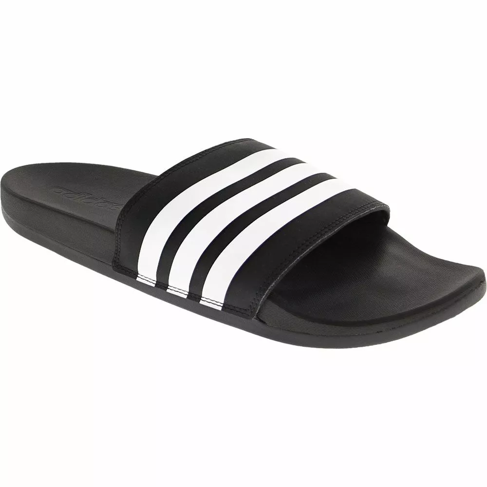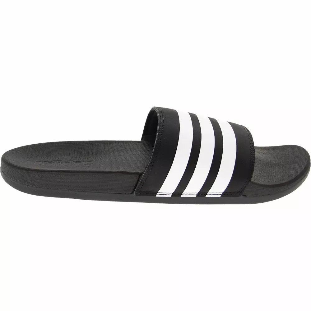 Adidas Adilette Comforted Slide Sandals – Mens. Kick back and relax in these lightweight Mens athletic slide sandals. Easy to wear and easy to love, these ultra-comfortable slide-on sandals provide a relaxed and contoured fit with Adidas’ signature sporty style. Enjoy plush comfort in every step with the cushioning effect of Adidas’ Cloudfoam Plus footbed technology and shock-absorbing EVA outsoles. With a signature three-stripe synthetic upper strap and textile lining, these sandals are the perfect blend of comfort and style.