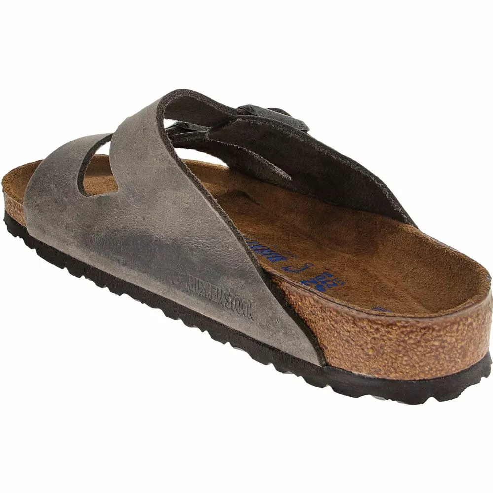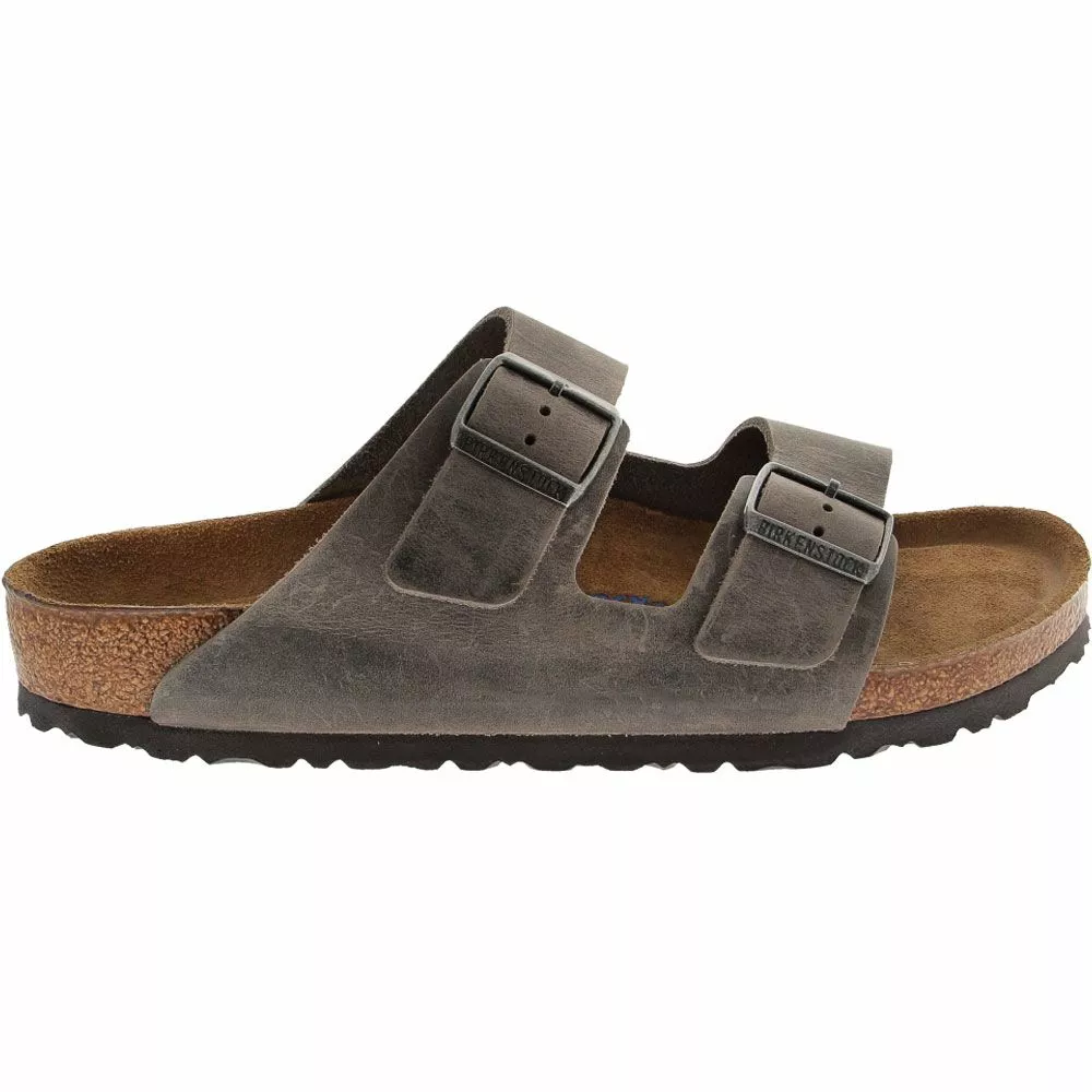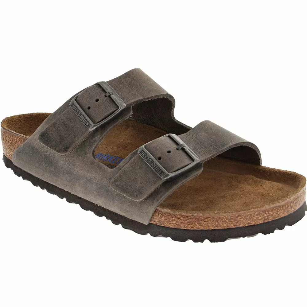 Birkenstock Arizona Mens Slide Sandal. This classic two strap sandal by Birkenstock has a new added benefit. The Arizona by Birkenstock now has a soft footbed for men. The Arizona is the perfect sandal for the gentleman who wants a classic look, a soft comfortable feel and all day comfort. This soft footbed feeling is created by inserting a foam layer between the cork layer and the suede liner of the footbed.