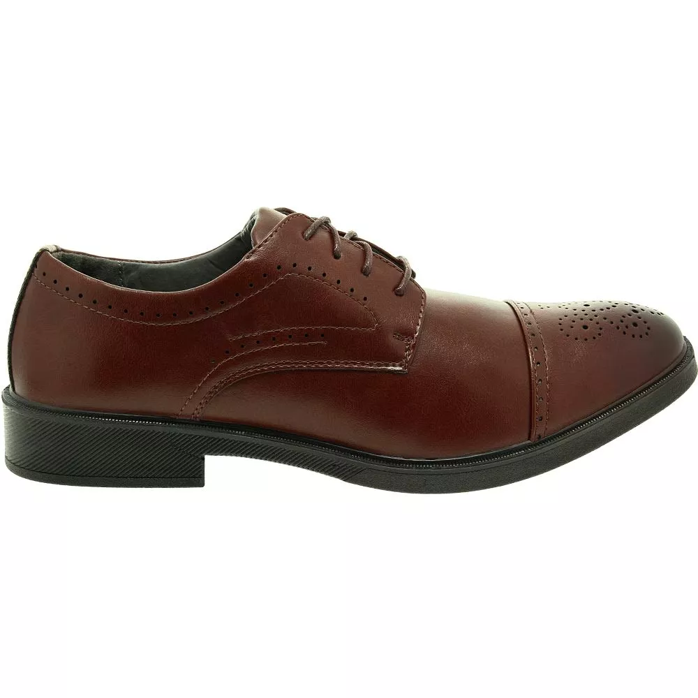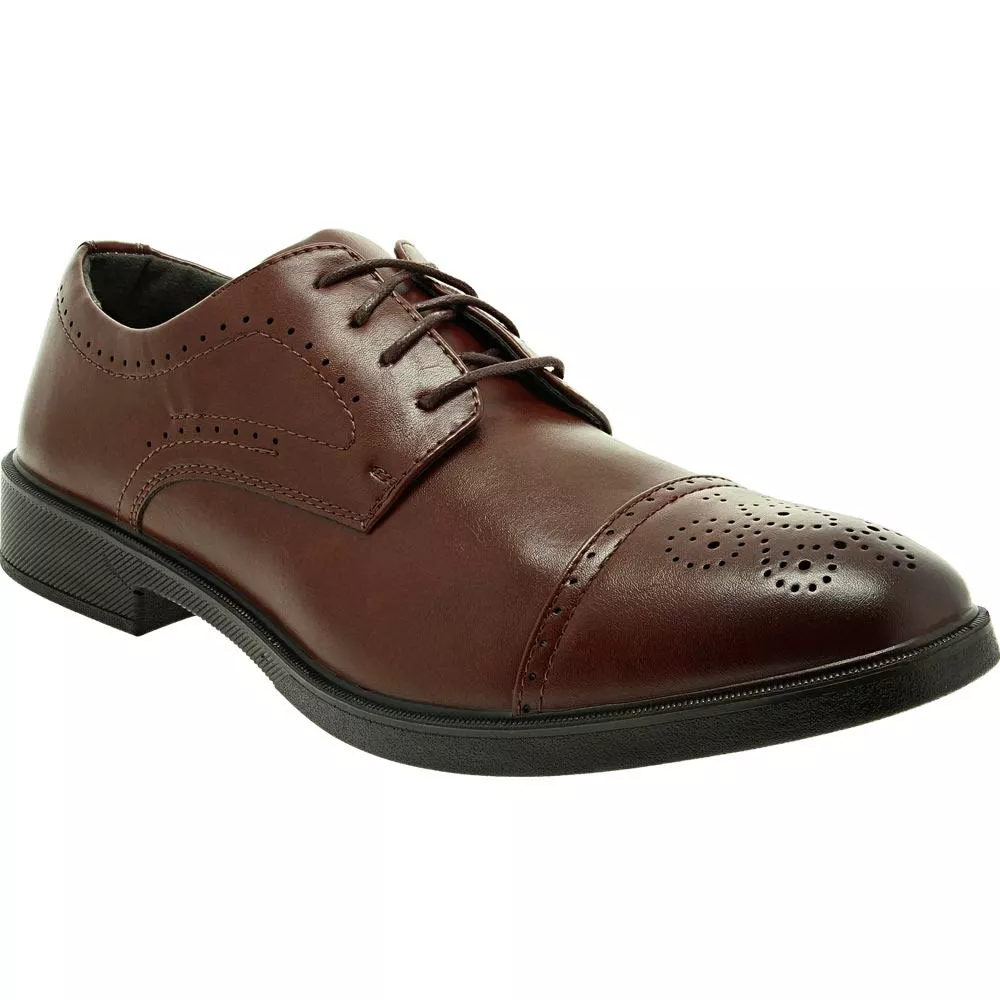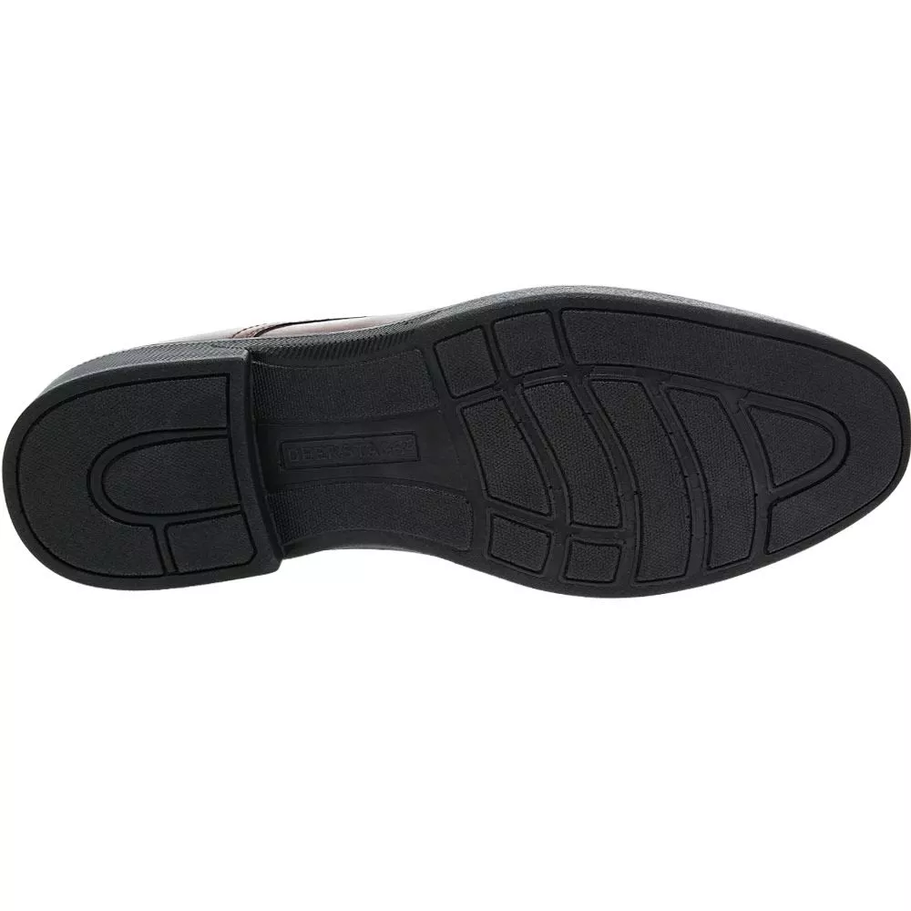 Elevate your daily style with this pair of Deer Stags Gramercy Oxford mens dress shoes. Smooth faux-leather uppers and classic brogue detailing add a touch of sophistication to your business wardrobe, while the one-inch block heel helps prolong the life of your soles. Enjoy lasting comfort with a customizable lace-up closure and memory foam insole that molds to the shape of your feet.