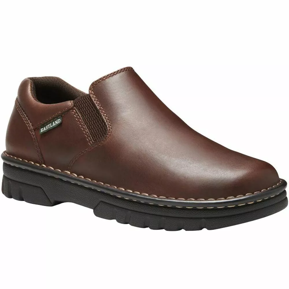 Eastland Newport Men’s Slip On Casual Shoes. Bring casual comfort and style to work or play with the Eastland Newport slip on. The full grain leather upper crowns a cushioned innersole and lightweight sole. Twin goring at the vamp gives them slip on access, leading to an interior that’s fully lined. A padded collar comforts the back of the ankle, completing the Opanka construction. These shoes will have you living in comfort.