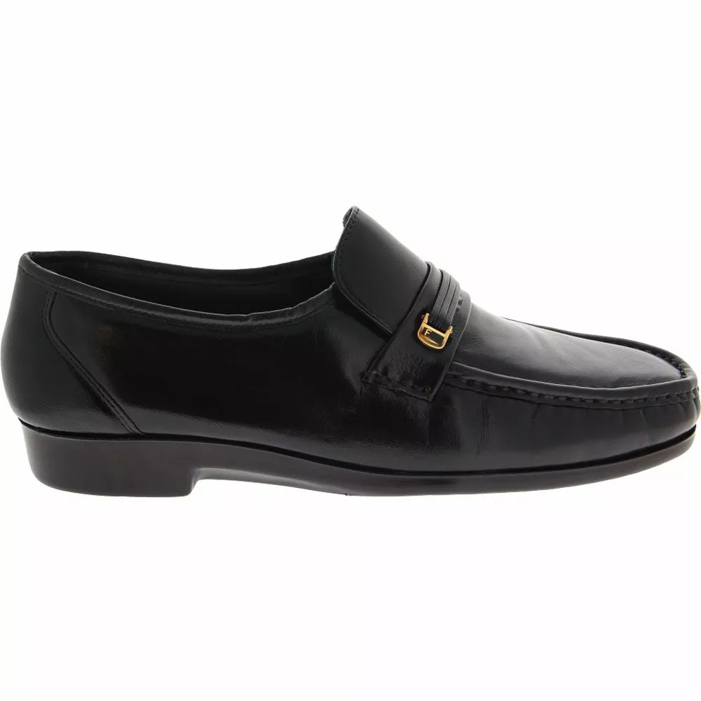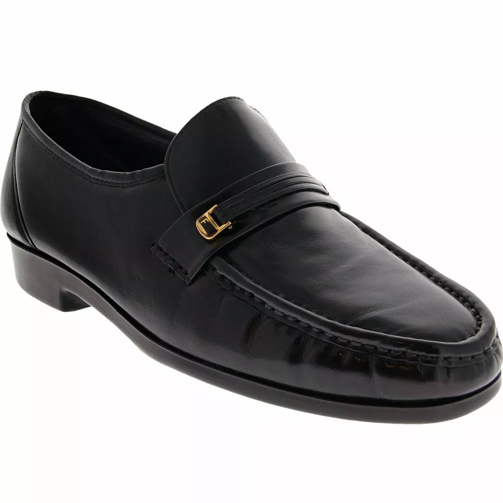 Florsheim Mens Riva Slip-On Dress Shoes. Wherever you roam, go in style with the Florsheim Riva dress shoe. Fully padded kidskin leather uppers keep a soft feel and a polished look around your foot. Leather lining and a fully cushioned footbed give you a comfy, cozy ride. Center gore slip-on and moccasin styling ensures instant flexibility and comfort. The Forefoot air flow zone allows air to circulate, keeping the foot cool and dry. The lightweight polyurethane sole has millions of microscopic air bubbles, making it both flexible and highly shock absorbent.