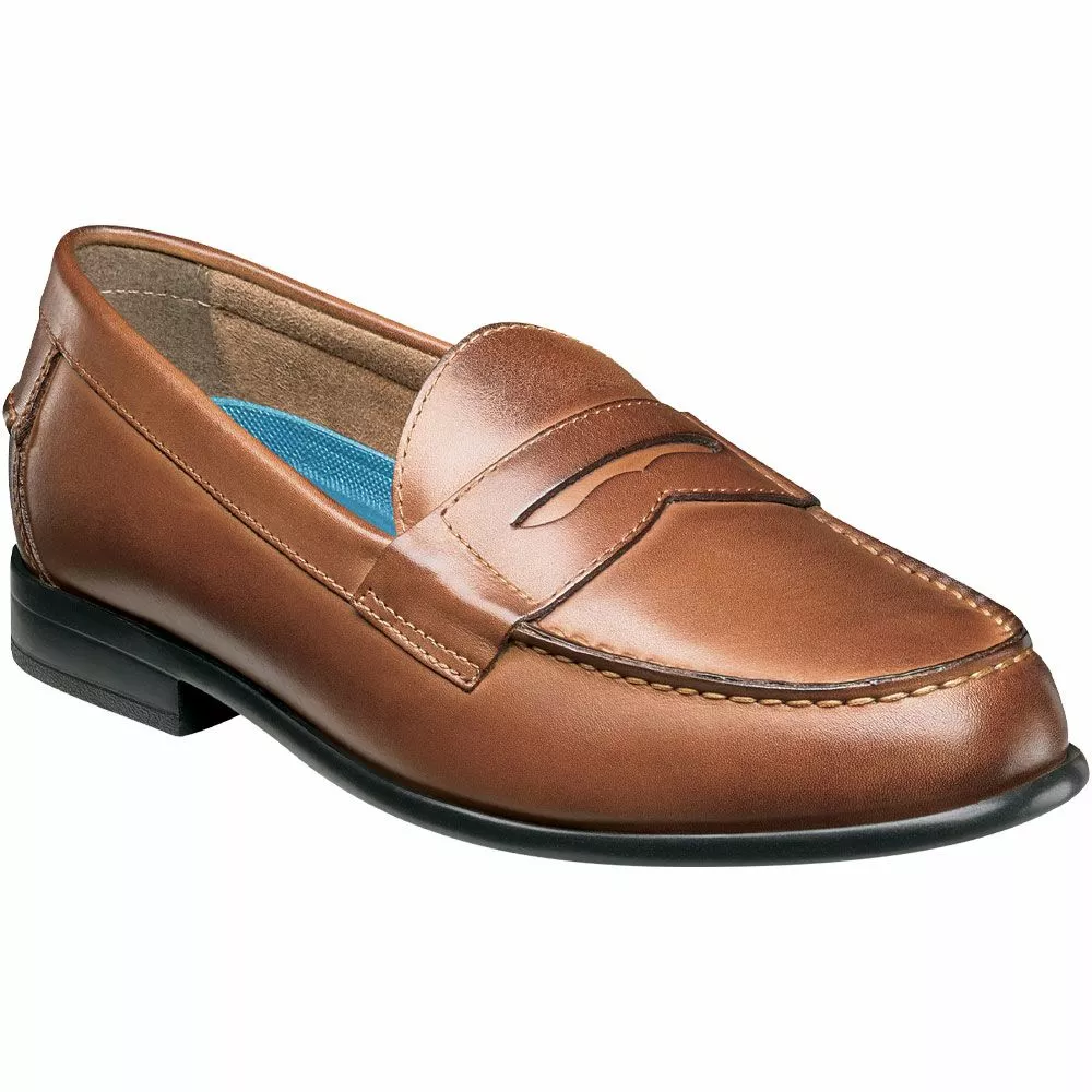 Nunn Bush Drexel Mens Penny Loafer Shoes. Penny loafers are a perennial style and make for practical women’s casual walking shoes. The premium leather upper on these shoes features classic styling with a leather strap. The slip-on design is a cinch to put on and take off. Suedetec lining promotes breathability and wicks away moisture. A gel and memory foam insole offers cushioning and works with the EVA midsole and rubber outsole to provide sustained impact absorption.