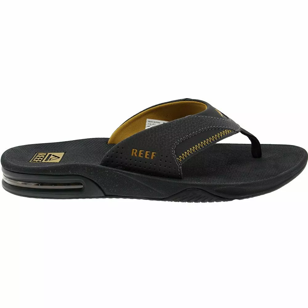 Reef Fanning Men’s Flip Flops. Make way for the champion of all sandals. Reef Fanning Men’s Flip Flops have everything a sandal should and more. The herringbone rubber outsole provides traction you can rely on, while the EVA footbed has an anatomical arch support to provide incredible comfortable. Additional comfort from the heel airbag makes this sandal unbeatable. Reef Fanning Flip Flops are water friendly and have a church key built into the footbed so the fun never has to stop.