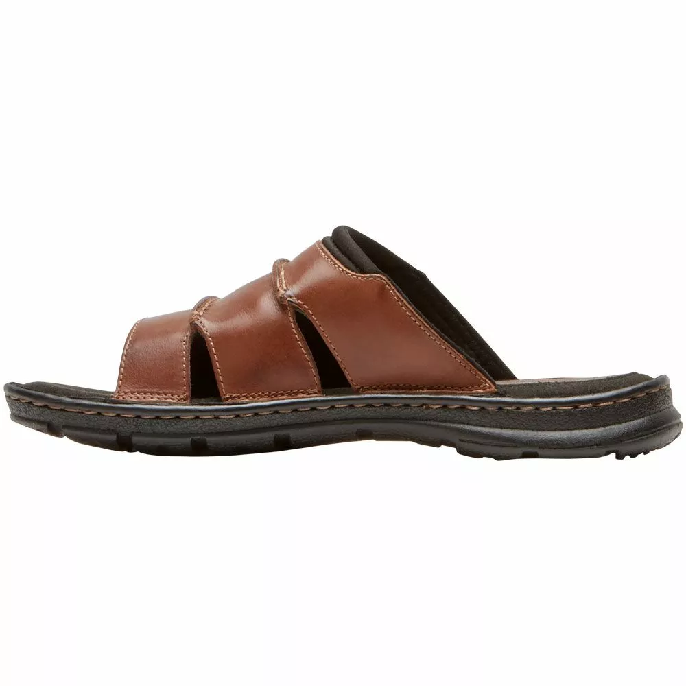 These mens slide sandals are going places. Darwyn by Rockport is a classic slide that looks good enough for a dinner down at the shore. The triple-strap upper is ruggedly handsome and will complement your casual wardrobe. The latex footbed is ultra-soft and supportive. You will appreciate the impact protection during long days strolling the boardwalk. Lightweight and breathable, these slides are the must-have footwear for your next warm weather vacation.