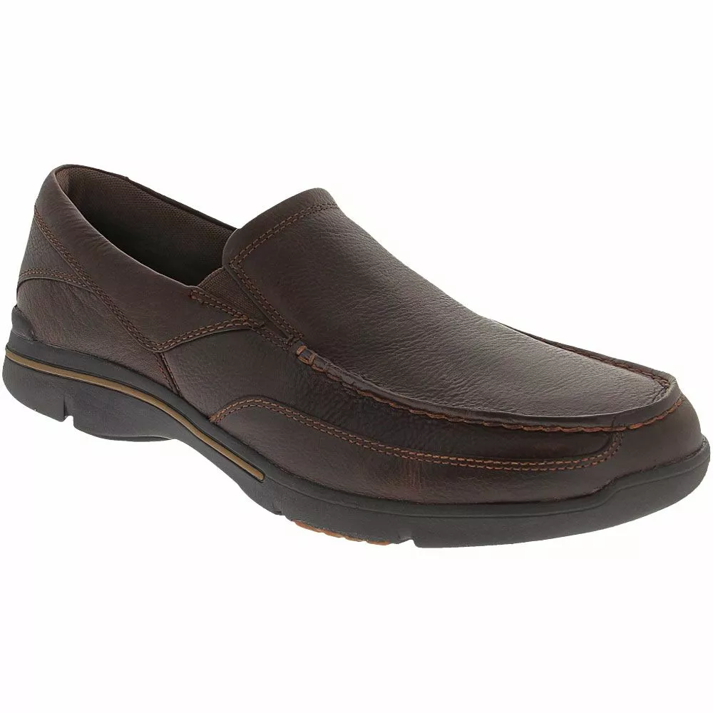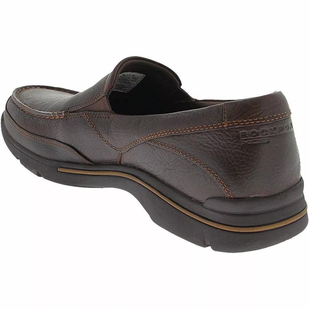 Rockport Eberdon Mens Slip On Casual Shoes. Enjoy easy-going style and reliable comfort with the Rockport Eberdon casual shoes. Genuine pebbled leather upper in a two-tone pattern. This slip on features an EVA midsole for lightweight shock absorption and reducing foot and leg fatigue. The rugged outsole is engineered to handle dicey terrain.