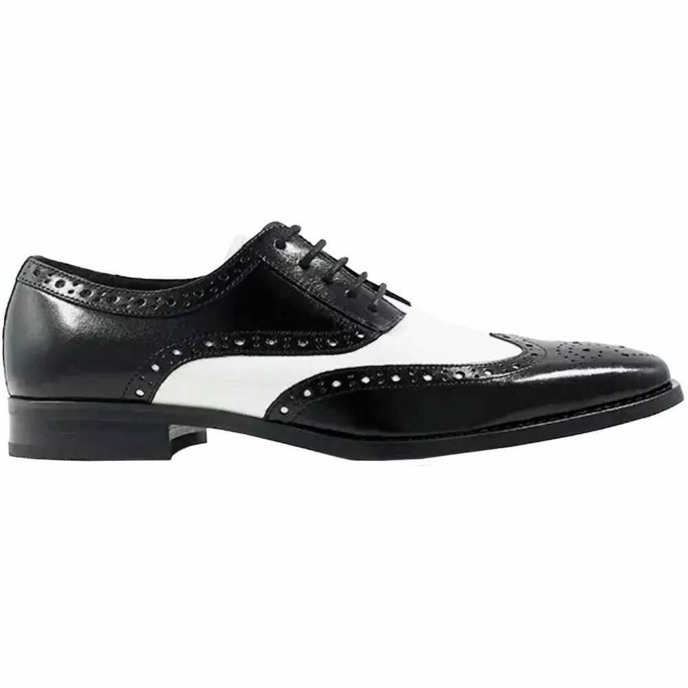 Stacy Adams Tinsley Mens Oxford Dress Shoes. Step into one of the most classic, renowned styles of dress shoe. The wingtip is elegant, classy and dresses up any outfit that you could possibly pair with them. The Stacy Adams Tinsley Oxfords play with a timeless look. Made with buffalo leather uppers, the shoes are a high-sheen shoe with intricate stitching. With an extra touch of style, it also features a stacked-style heel. With a soft, cushioned insole, you’ll never be uncomfortable.